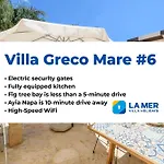 Vila Villa Greco Mare #6 je umístěna 4 km od Sochařský park Ayia Napa, je 3-ložnicové ubytování s terasou. V pokojích vily jsou standardem kompletní kuchyně i vícekanálová televize, bezdrátové připojení a ovládání klimatizace.